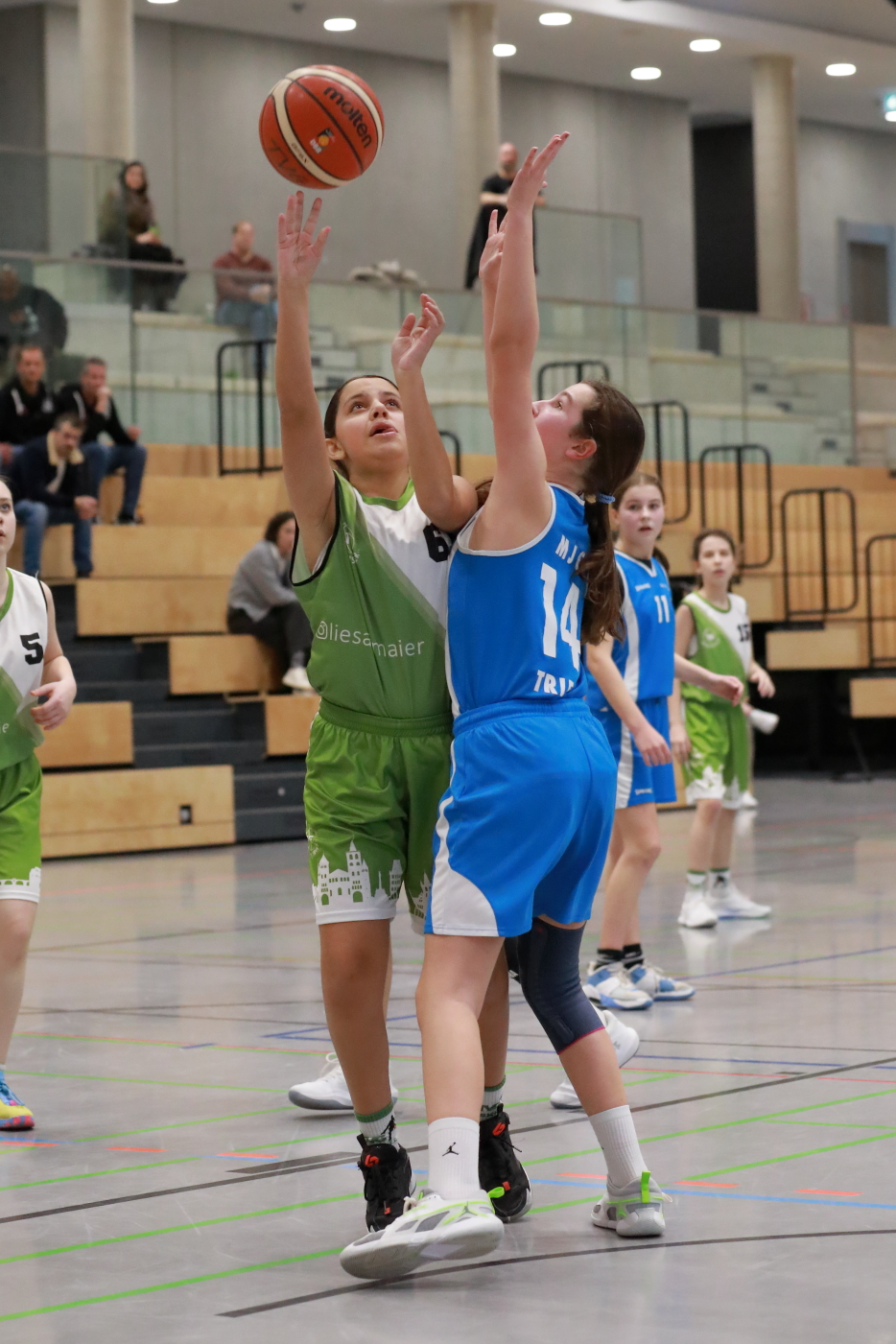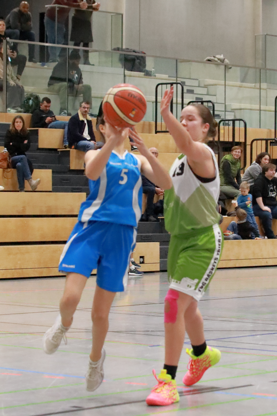 Teams fanden schnell ins Spiel rein. Die TVG Mädels zeigten in der Offensive ein tolles Zusammenspiel. Der Ball wurde gut bewegt und man fand immer wieder freie Lücken, die zum Korberfolg führten, wie zum Beispiel Jeta Zilfijaj, die durch ein schönes Anspiel von Nele Rielke ihre ersten Punkte für den TVG erzielen konnte. Gleichzeitig machten die Wittlicher das Spiel schnell und konnten so ein ums andere Mal durch einen Fastbreak punkten. Das Viertel endete mit 12-15 Rückstand.